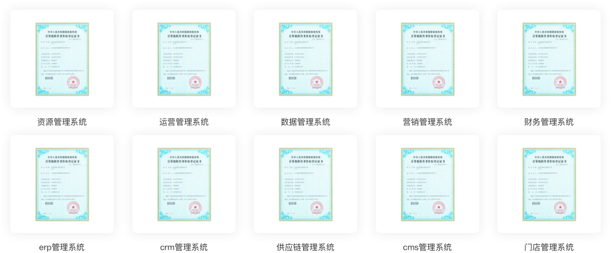 为知名企业提供技术开发服务,并获得相关的软件著作权(部分展示)。涉及《资源管理系统》、《运营管理系统》、《数据管理系统》等